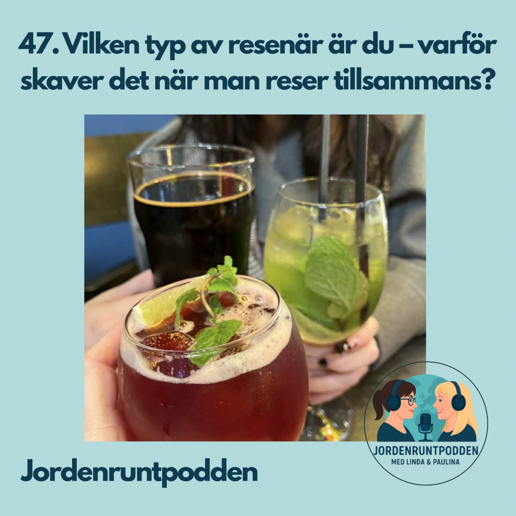 I det här avsnittet pratar vi om olika typer av resenärer och varför det så lätt kan skava på resa – även när man reser med människor man tycker om. Vissa vill hinna allt, andra vill ta det lugnt. Någon behöver struktur för att kunna slappna av medan någon annan vill kunna välja i stunden.